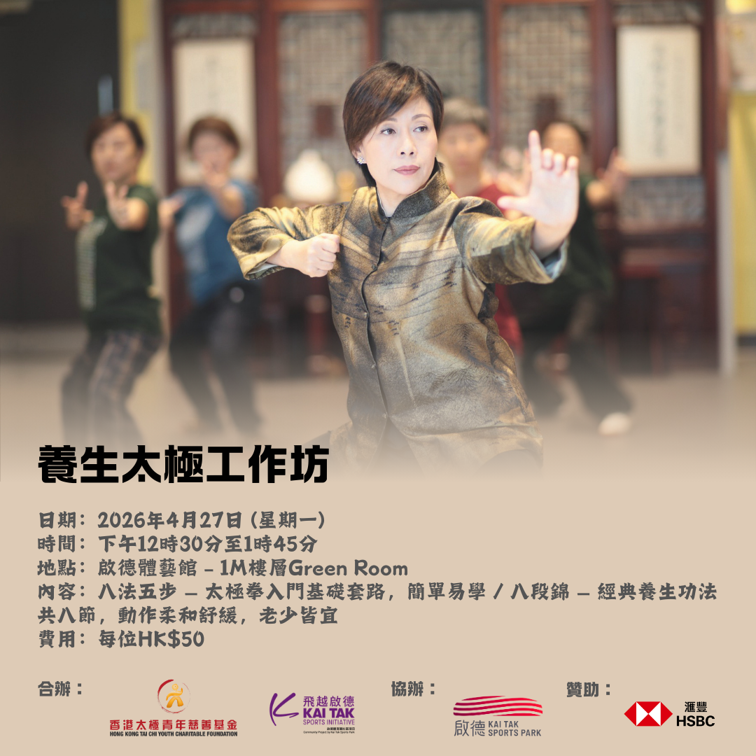 To promote Tai Chi within the community, a series of ‘Baduanjin’ and ‘Eight Methods Five Steps’ workshops will be held from April to July, inviting the public to experience the joy of Tai Chi and wellness practices, strengthen physical functions, and enhance physical and mental well-being.